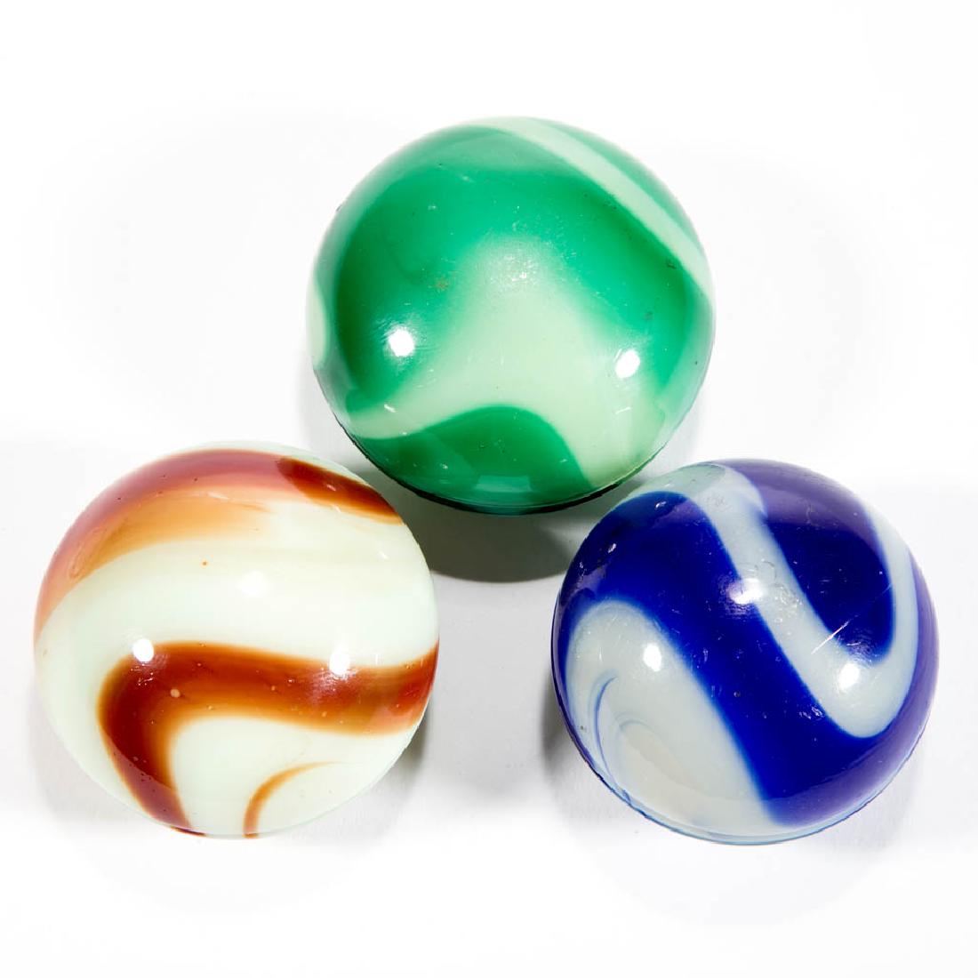 VINTAGE AKRO AGATE GLASS GEARSHIFT KNOBS, LOT OF THREE